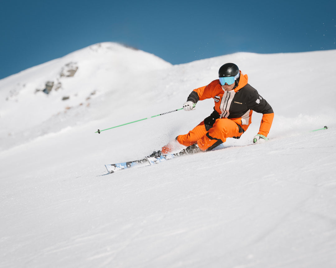 Seine Ski – individuell konfiguriert mit ORIGO. Harry nutzt sowohl den 6X als auch den 6G, je nachdem, welches Modell am besten zu Schnee, Gelände und Ziel des Tages passt.